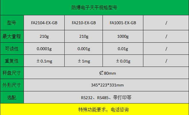 防爆電子天平,是專為具有爆炸和爆燃危險的產品生產場所開發研制的微電腦控制電子精密稱量設備,其防爆標志為dⅡBT4,可在兵器行業火、炸藥和火工品制造裝配、彈體裝藥、裝配檢測稱量,航空航天彈箭飛行器具研制以及民用爆破器材生產中得到廣泛應用。